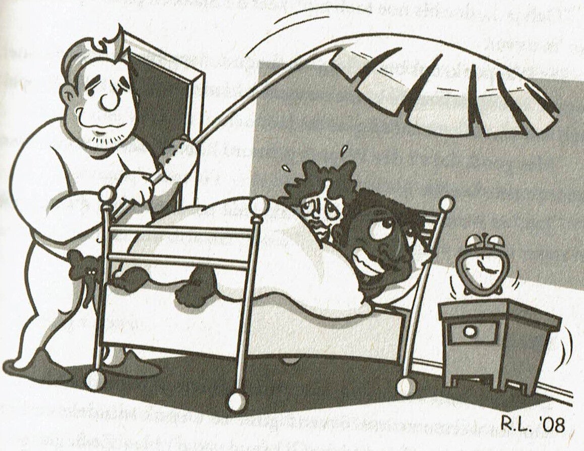"Mé jong," zèet d'r Sjaak wente is oetgekald, "dat höbbe veër ooch 'ns an d'r fiets gehad, doe mos dich 'ne Wapper hure. Dat is 'ne groeëte, forsje neger en zoelang wie d'r bezig zeet, wappert dèe mit e groeët palmblad uvver uch heen. Dat guft frissje loef en ooch extra kriebels, da geeste wie 'ne trein."